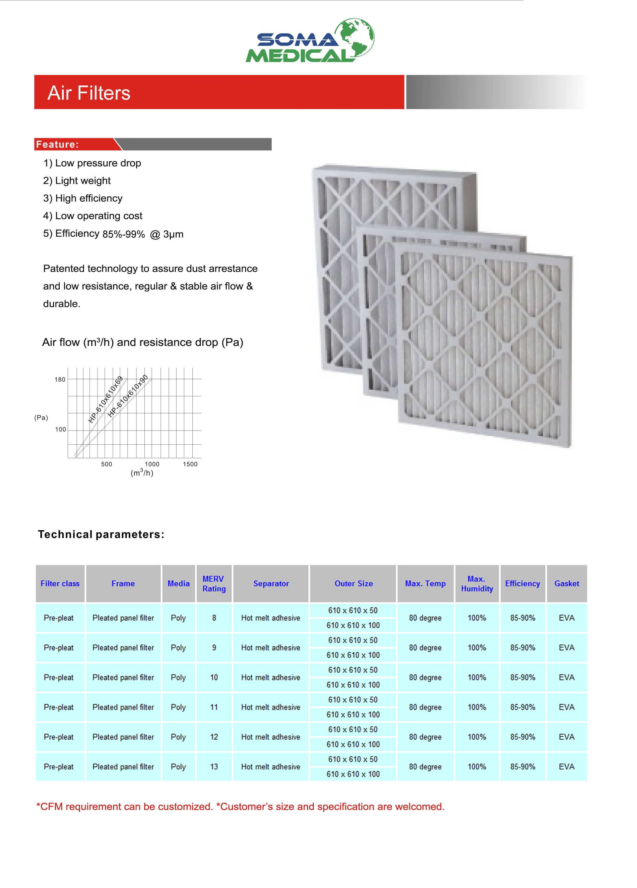 Patented technology to assure dust arrestance and low resistance, regular & stable air flow & durable